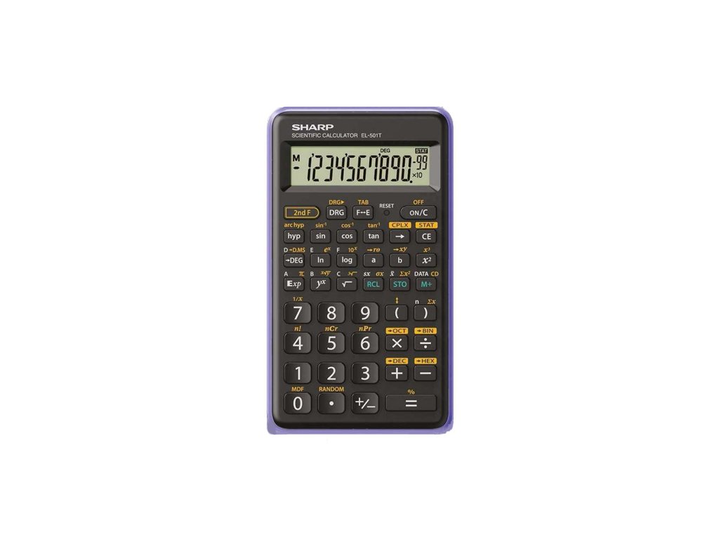 Vedecká kalkulačka vhodná najmä pre študentov stredných škôl. Sharp EL-501TVL (SH-EL501TVL) má 1-riadkový displej, na ktorý sa zmestí až 10 číslic. Disponuje 146 matematickými, štatistickými a trigonometrickými funkciami. Napájanie zabezpečuje klasická batéria. Pokročilé matematické funkcie (odmocnina, výpočet %), štatistické funkcie (jednej / dvoch premenných, priemer, odchýlka) a trigonometrické funkcie (sin, cos, tan, inverzné funkcie, hyperbolické funkcie, prevody medzi šesťdesiatkovou a desiatkovou sústavou). Napájanie pomocou batérie. Až 10 číslic na displeji, riadkový displej. Farba: čierna/fialová.Dodatočné parametre