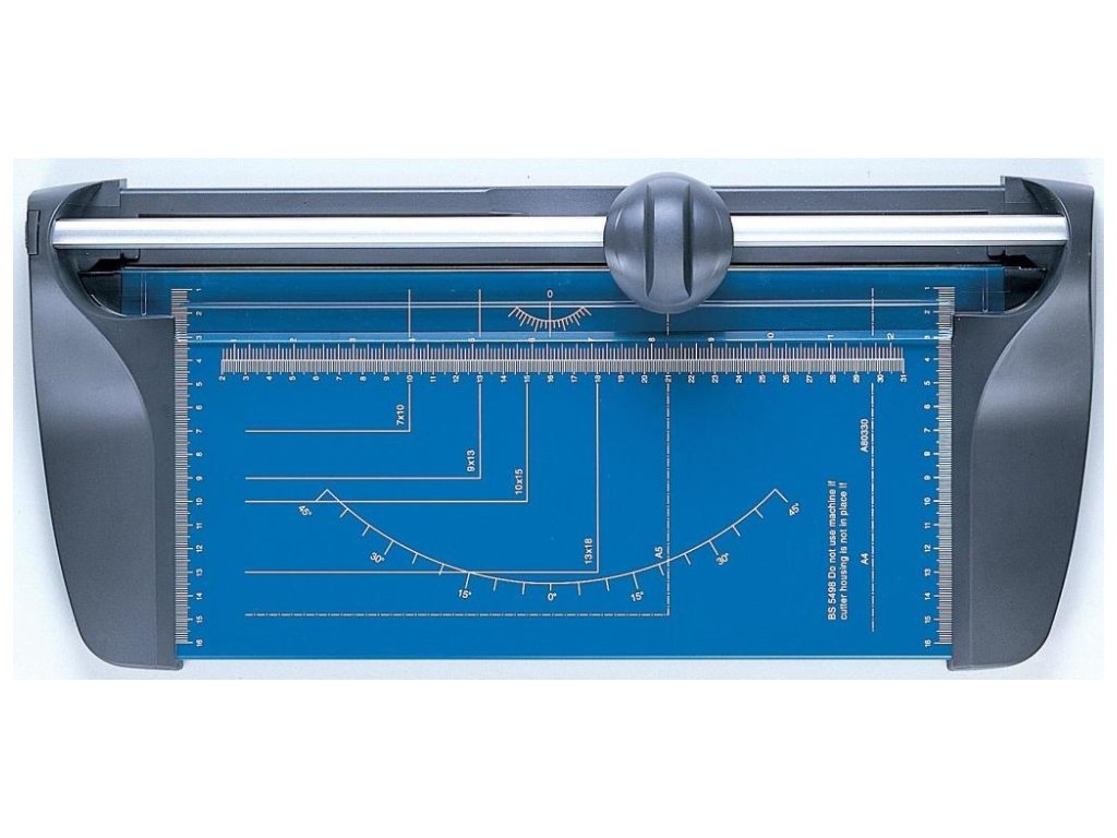 Kotúčová rezačka s brúseným kolečkom na profilovanej tyči s maximálnou dĺžkou rezu 330 mm. Pracovný stôl je vybavený natlačenými mierkami a uhlami. Nechýba prítlačná lišta z priehľadného plastu. Rezačka vďaka svojej konštrukcii odreže bez problémov 10 listov papiera 70g / m2.Dodatočné parametre