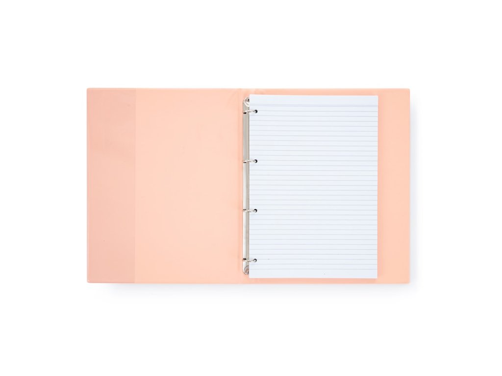Blok v moderných pastelových farbách s krúžkovou mechanikou, formát A5, 100 linkovaných listov, vnútorná zakladacia zložka.Dodatočné parametre