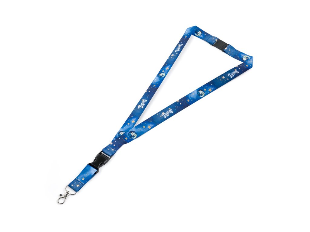 Kľúčenka na krk s potlačou, na konci karabína.