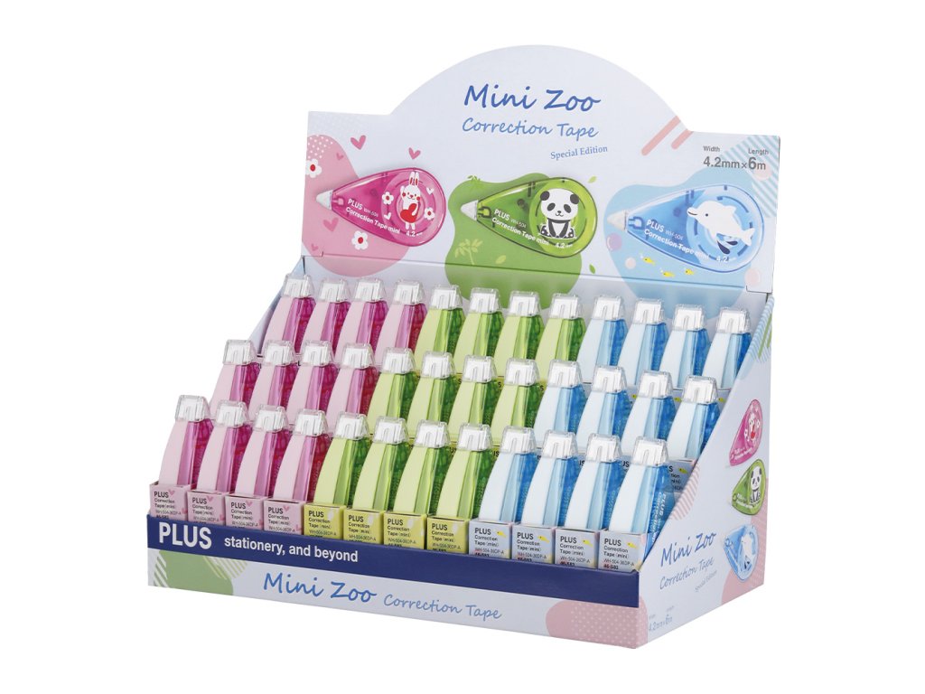 Korektor páska PLUS Mini Zoo (4,2 mm x 6 m) - mix farieb