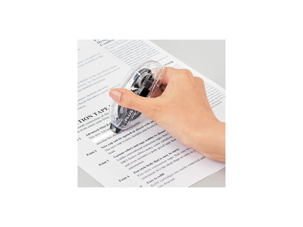 Korekčný strojček inovatívneho dizajnu, s pohyblivým aplikačným hrotom umožňujúcim pohodlné a čisté nanášanie suchého korekčného filmu šírky 4,2 mm, dĺžka 20 m.Dodatočné parametre