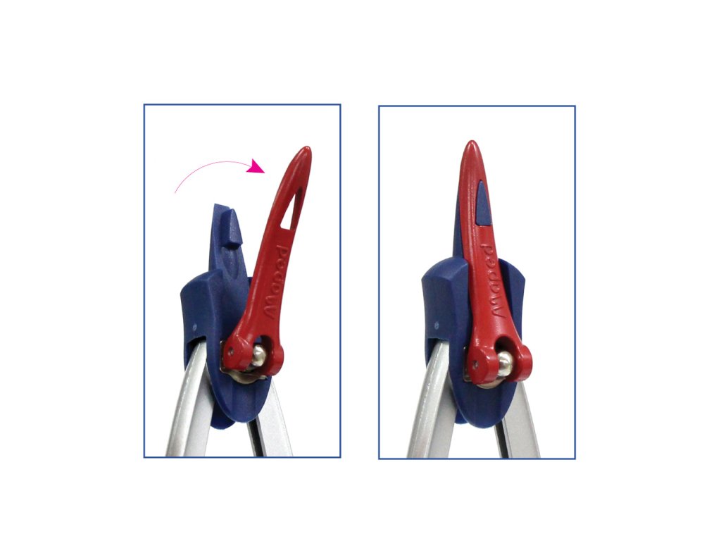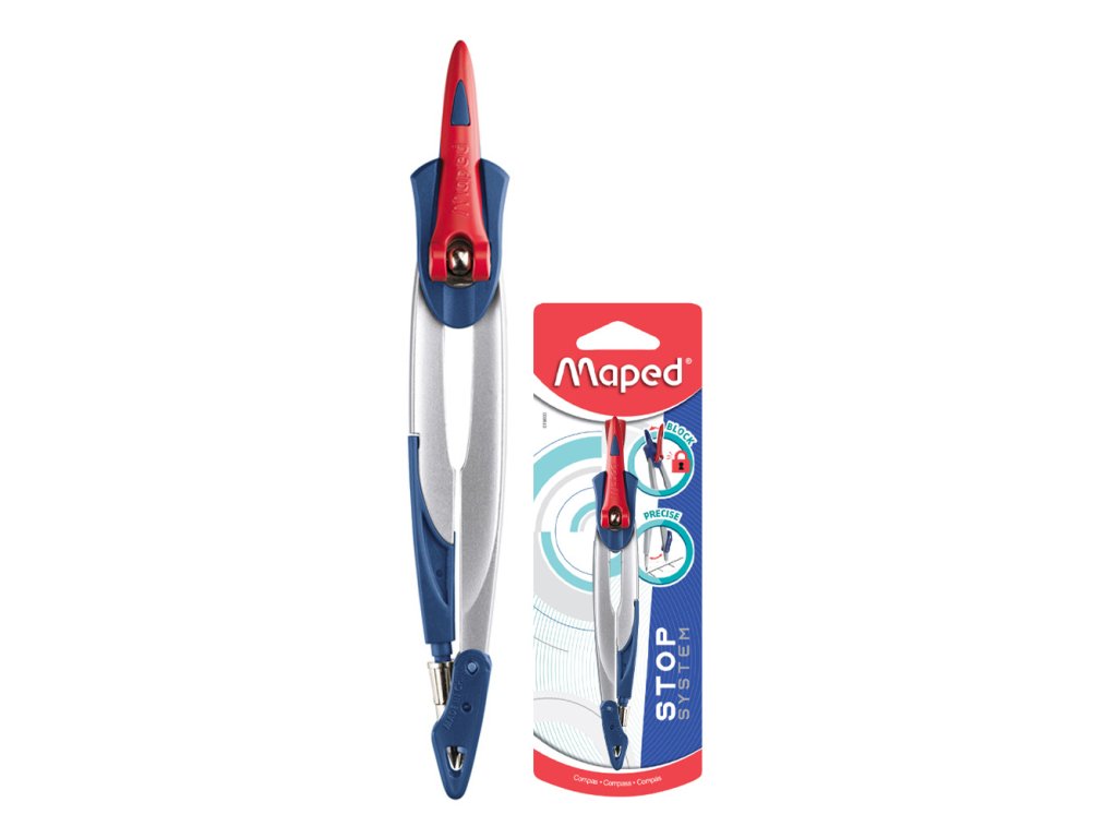 Kovové kružidlo s fixáciou ramien, s 2 mm tuhou. Patentovaný princíp systému Stop System- zabezpečenie ramien v danej polohe. Francúzka značka MAPED zaručuje vysokú kvalitu, funkčnosť a moderný dizajn.Dodatočné parametre