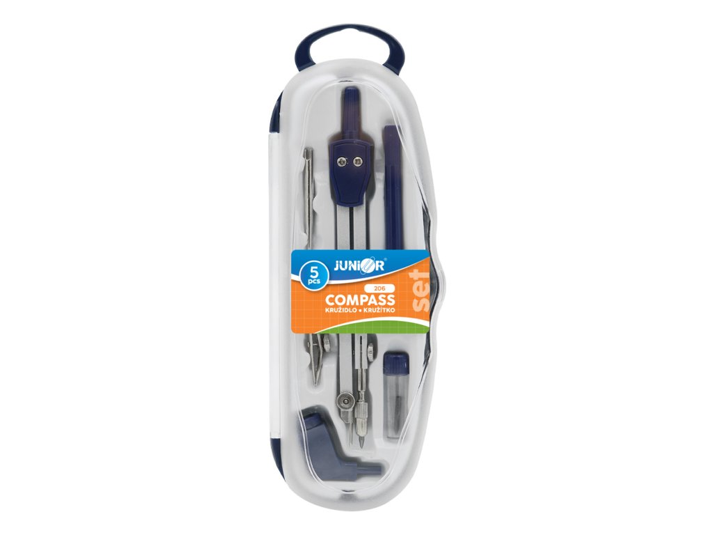 Školské kružidlo z kovu v kombinácii s plastom, balené v praktickom puzdre.