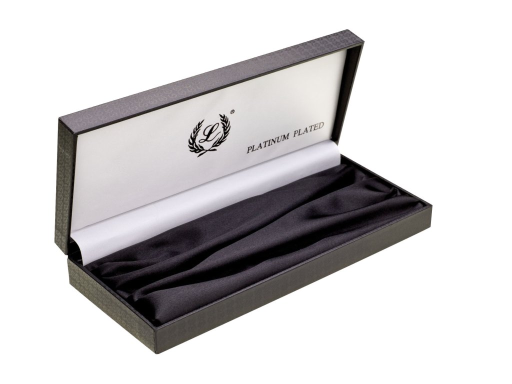 Puzdro LABAN je potiahnuté čiernou saténovou látkou s drobným vzorom, vnútro puzdra je vyložené čiernym saténom. Balené v čiernej papierovej ochrannej krabičke.Dodatočné parametre