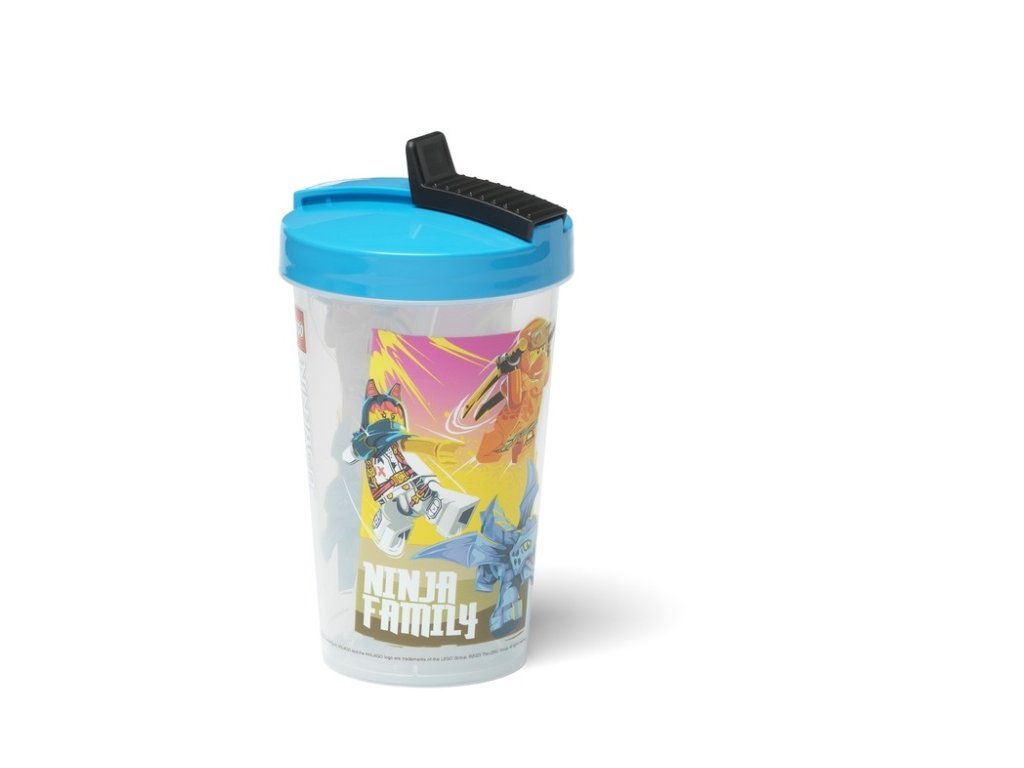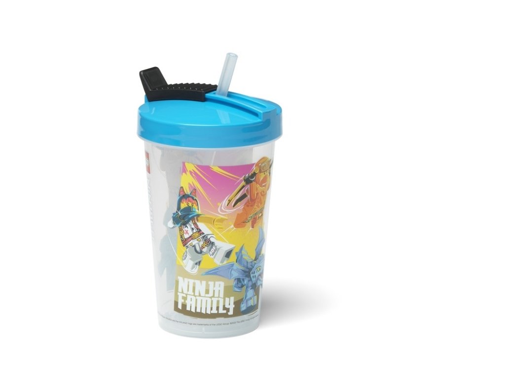 Nový LEGO kelímek s brčkem s motivem LEGO Ninjago. Pokud z láhve zrovna nepijete, jednoduchým pohybem uzavřete víčko a brčko se automaticky schová. Láhev jistě potěší všechny LEGO fanoušky. Rozměry: průměr 87 mm, výška 158 mm. Objem 500 ml. Materiál neobsahuje bisfenol A (BPA) ani ftaláty. Bez použití PVC.Dodatočné parametre