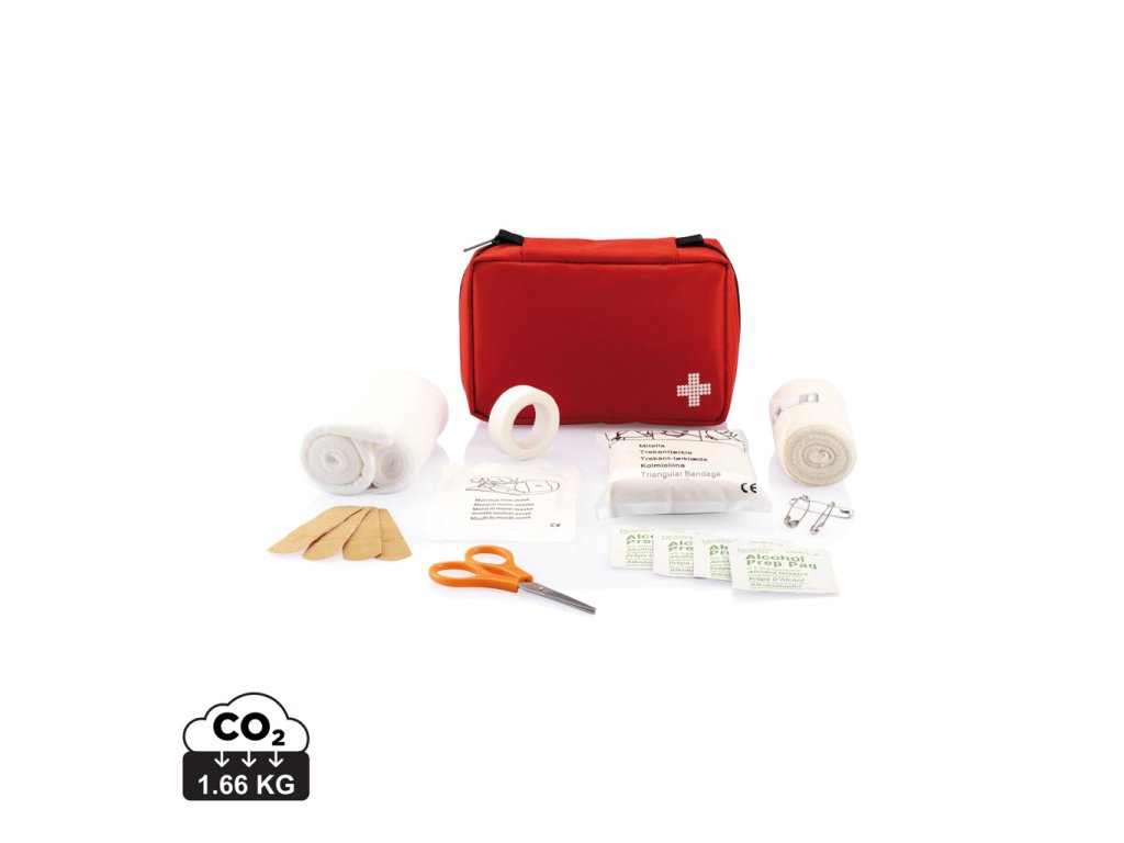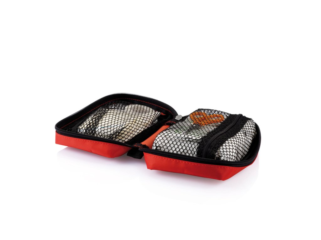 24 ks vrecko na zips, vrátane obväzu, chirurgických rukavíc, nožníc a pásky v nylonovom puzdre. Obsah je balený naplocho tak, že celú súpravu je možné vložiť do poštovej schránky, 200 g. Spĺňa normu ISO EN 13485:2016.Dodatočné parametre