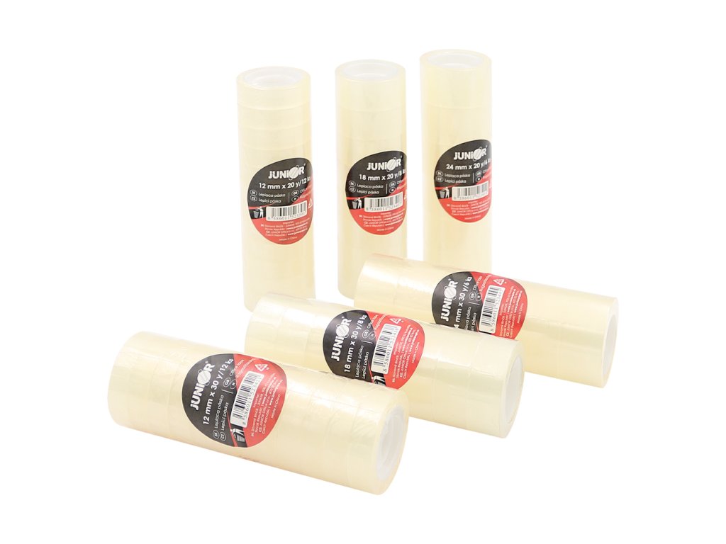 Transparentná lepiaca páska stĺpovito balená, šírka pásky 24 mm, návin 20 m, vhodná na bežné použitie.