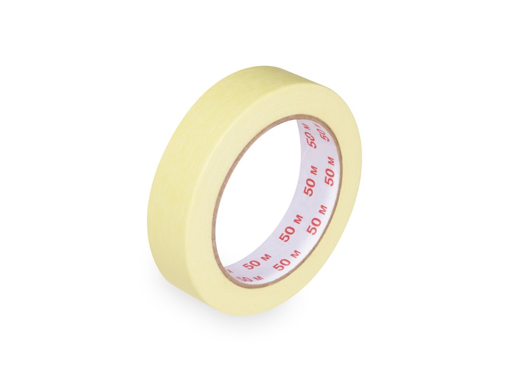 Lepiaca páska krepová žltá; šírka 25 mm, dĺžka návinu 50 m; dodávaná jednotlivo alebo v balení po 36 ks.