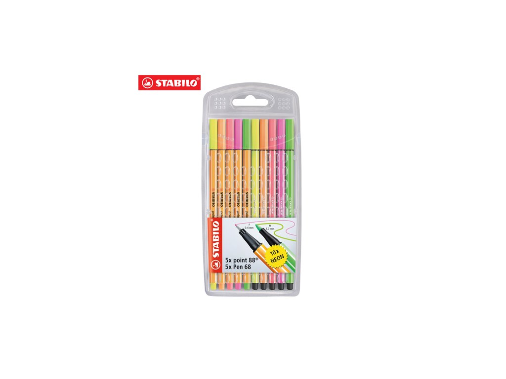 STABILO Pen 68 - 10 ks balenie point 88 + pen 68 sa perfektne hodí k súčasným trendom v oblasti bullet journal, poznámok, skicovani a alebo hand lettering. Ale aj fanúšikovia mandál čipriatelia maľovania a kreslenia sú nadšení zo všestrannosti kvalitného „vlákna“. Kreatívni a (hobby) umelci milujú veľkú rozmanitosť, s ktorou je možné farebne zrealizovať každý nápad. Robustný hrot zaručuje rovnomerné rozloženie farby a je ideálny na kreslenie hrubších línií a vypĺňanie prázdnych oblastí. Pen 68 vás svojím výkonom naozaj prekvapí - 24 hodín bez vrchnáčika, vodou rozmývatelná náplň na vodnej báze bez zápachu, vysoko jasné a žiarivé farby.Dodatočné parametre