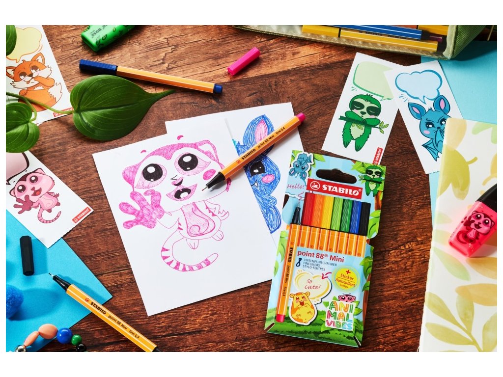 Liner STABILO point 88 Mini Animal Vibes (sada 8 ks)