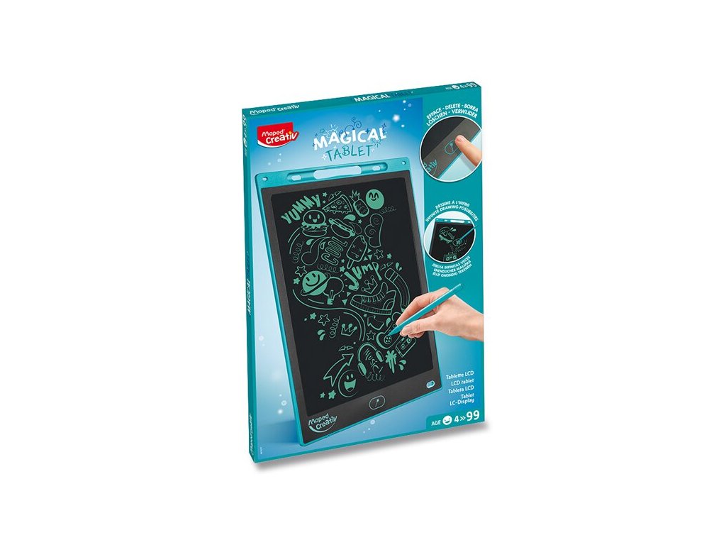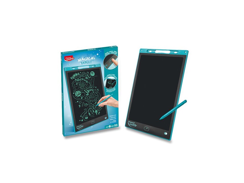 Magický tablet Maxi s LCD obrazovkou predstavuje zábavu nezávislú na elektrickej energii a pripojenie k wifi. Je skvelý na zabavenie detí na cestách, u lekára a pod. Možno ho použiť aj ako tabuľku na rodinné odkazy.Vlastnosti: