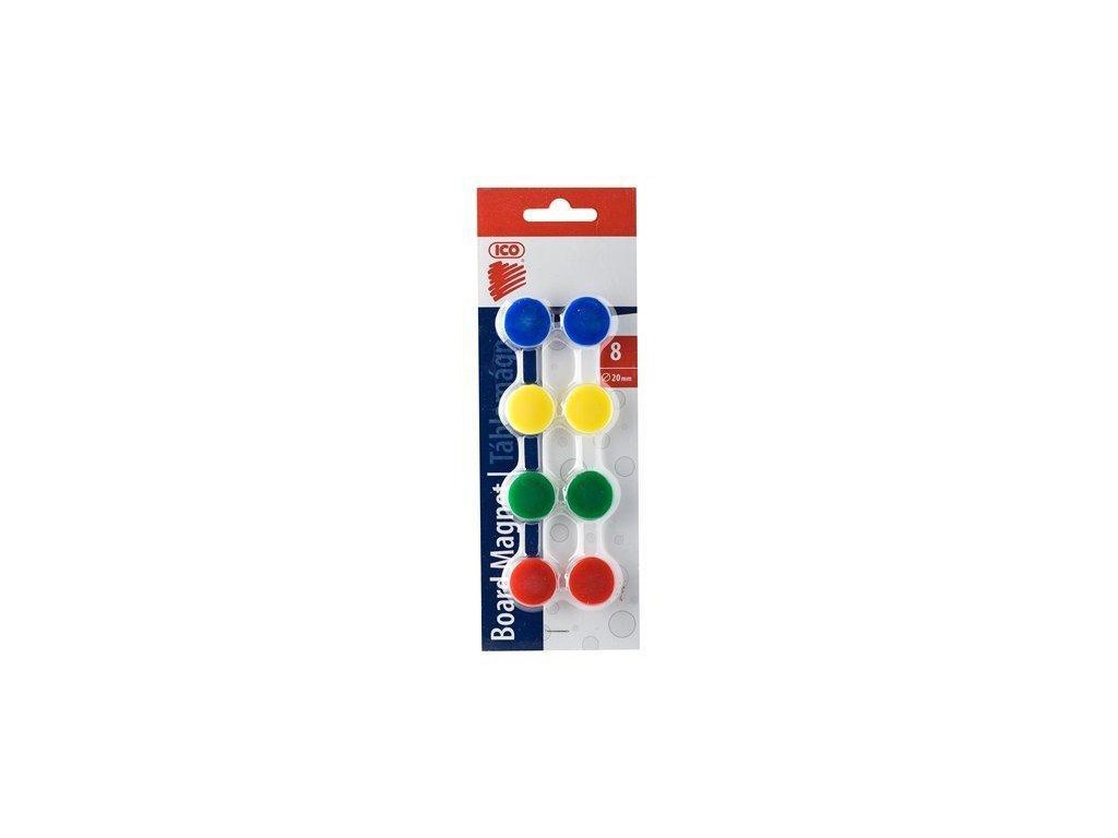 Plastové magnety priemeru 20mm, praktické k magnetickým tabuliam. Balené na blistri po 8 kusoch v štyroch výrazných farbách.