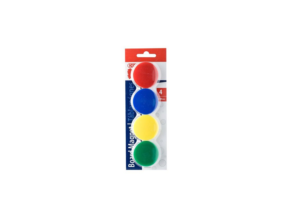 Farebné plastové magnety priemeru 40mm, praktické k magnetickým tabuliam. Balené na blistri po 4 kusoch.