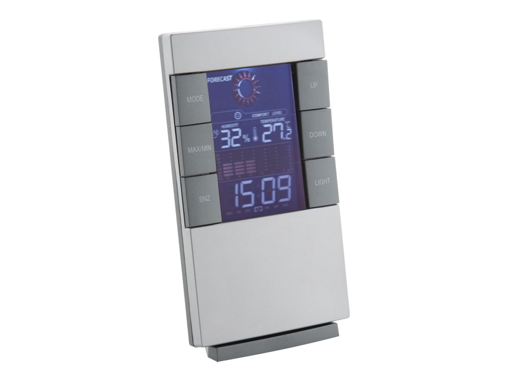 Digitálna meteostanica s hodinami s farebným displejom. Funkcia: budík, teplomer, vlhkomer a pamäť 12 hodinového vývoja teploty. Dodávané bez 2 ks AAA batérií.Dodatočné parametre