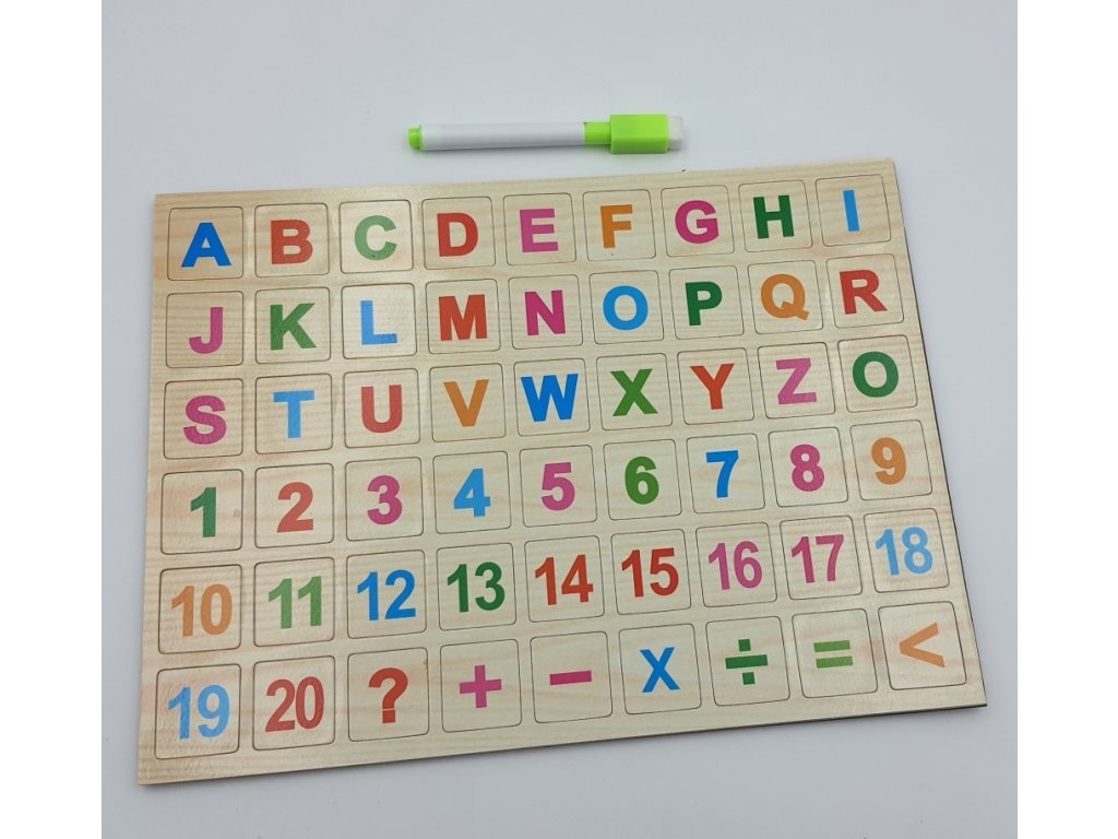 Edukačná pomôcka pre najmenšie ratolesti pozostáva z bielej magnetickej tabule na jednej strane a farebným počítadlom na strane druhej + odkladací priestor na magnetické písmenká, čísla.