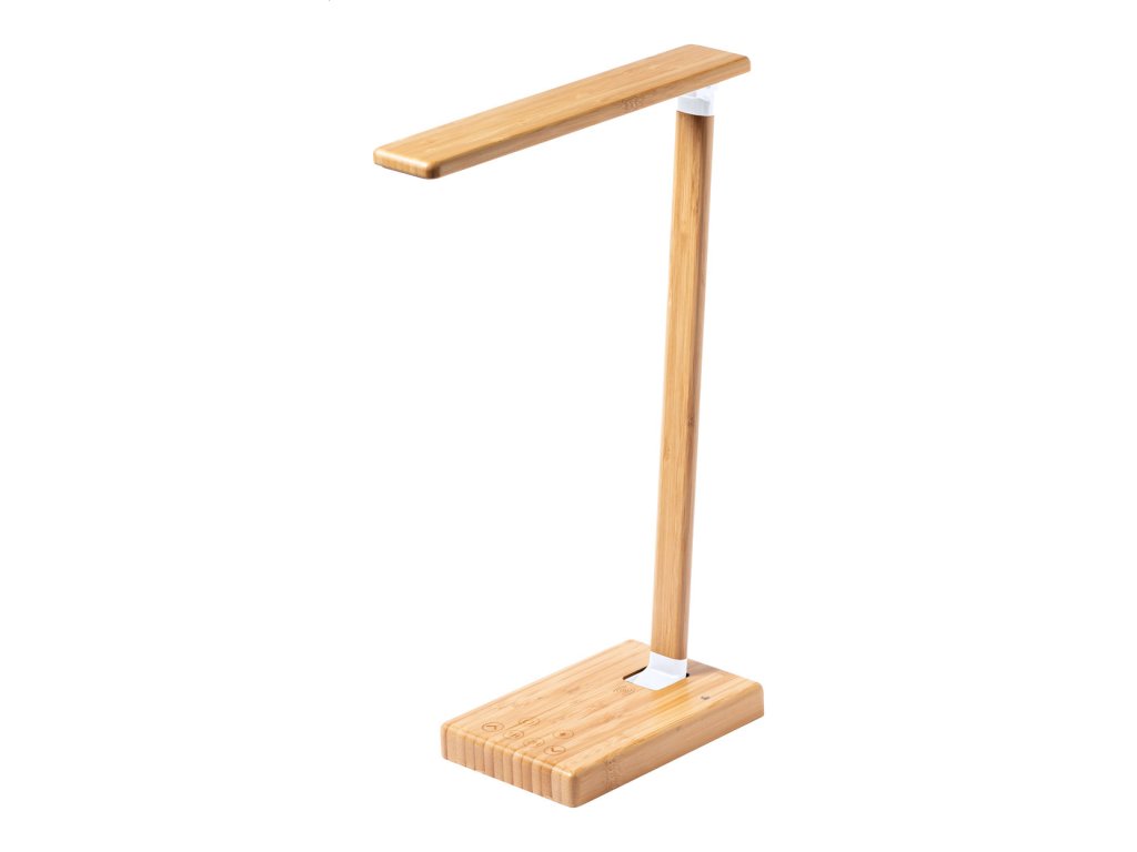 Bambusová multifunkčná stolná lampa s 25 LED diódami, nastaviteľným jasom a 1/2 hodinovým časovačom. So vstavanou bezdrôtovou rýchlonabíjačkou (10W) a portom USB pre nabíjanie 2 zariadení súčasne (1 bezdrôtovo a 1 cez kábel). Vrátane USB nabíjacieho kábla.Dodatočné parametre