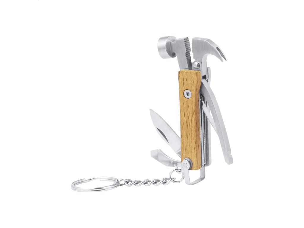 Multifunkčné náradie z nerezovej ocele s drevenou rukoväťou a 7 funkciami. S kovovým krúžkom na kľúče.Dodatočné parametre