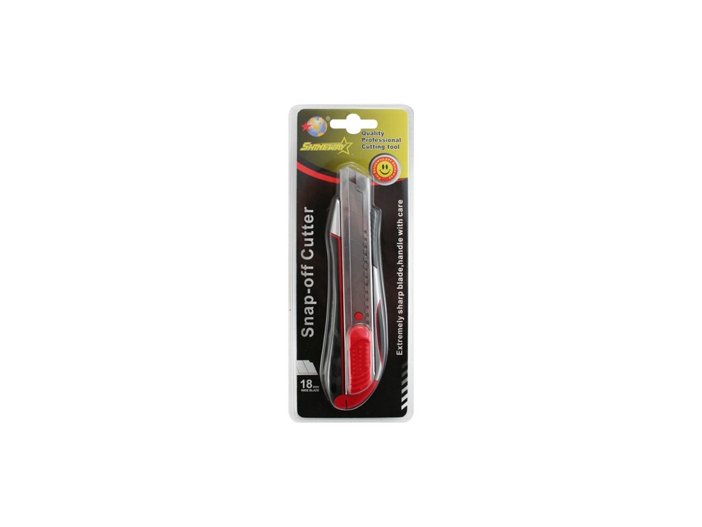 Profesionálny orezávací nôž s vysúvacou čepeľou šírky 18 mm s gumovou rukoväťou. Telo noža je kovové. Celková dĺžka noža: 16,5 cm. Farba: červeno čierna.Dodatočné parametre