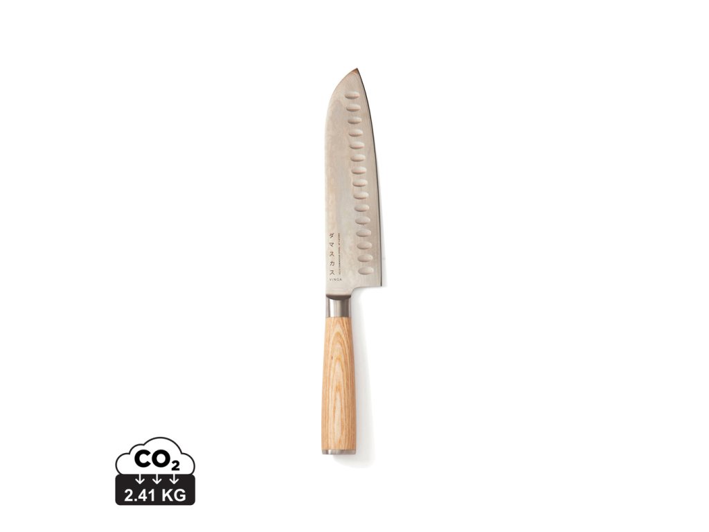 Tento nôž Santoku je ideálny na krájanie mäsa a väčšej zeleniny alebo sekanie byliniek. Robustná rukoväť z dreva pakka je ergonomicky navrhnutá pre jednoduché používanie noža. Vďaka tomu vás ruka nebude bolieť ani pri dlhodobej práci s nožom. Čepeľ má úžasne tvrdé jadro z ocele VG10, ktorá je odliata zo 67 vrstiev ocele. Výsledkom je odolná čepeľ s neuveriteľnou ostrosťou a vynikajúcim rezným výkonom.Dodatočné parametre