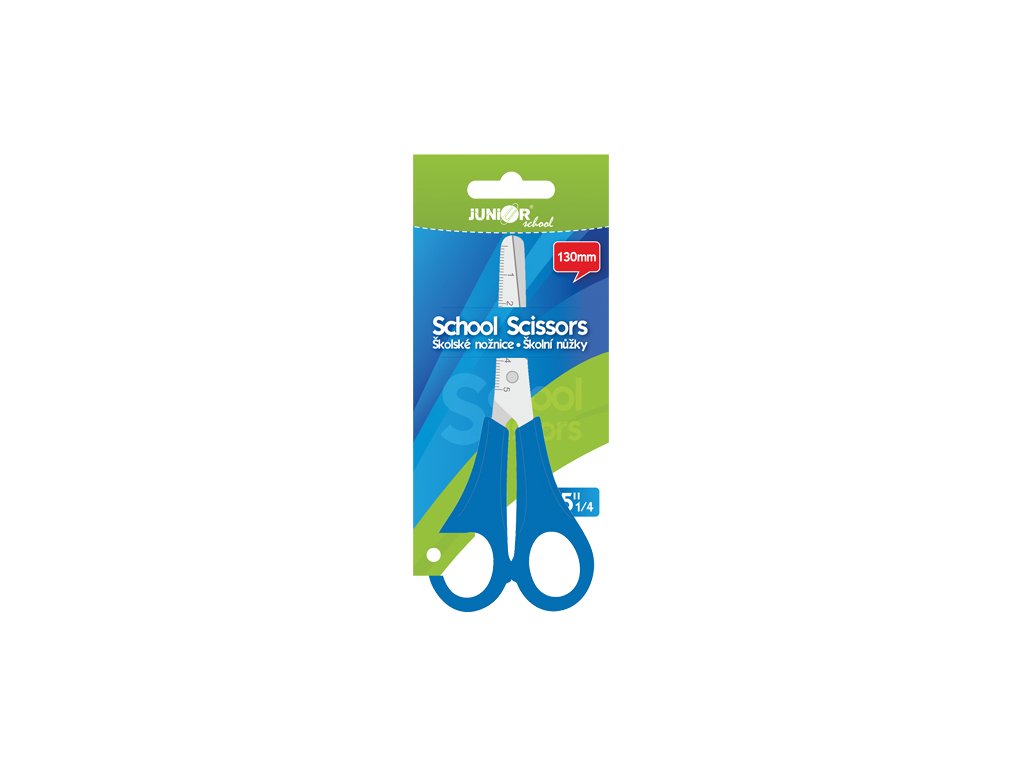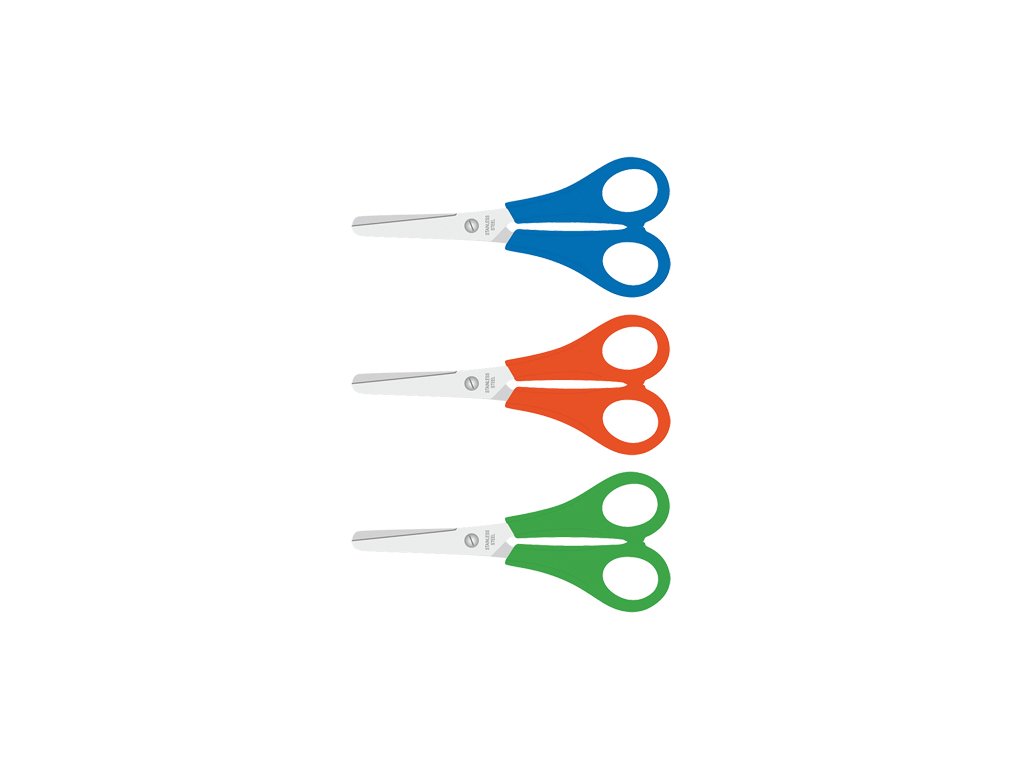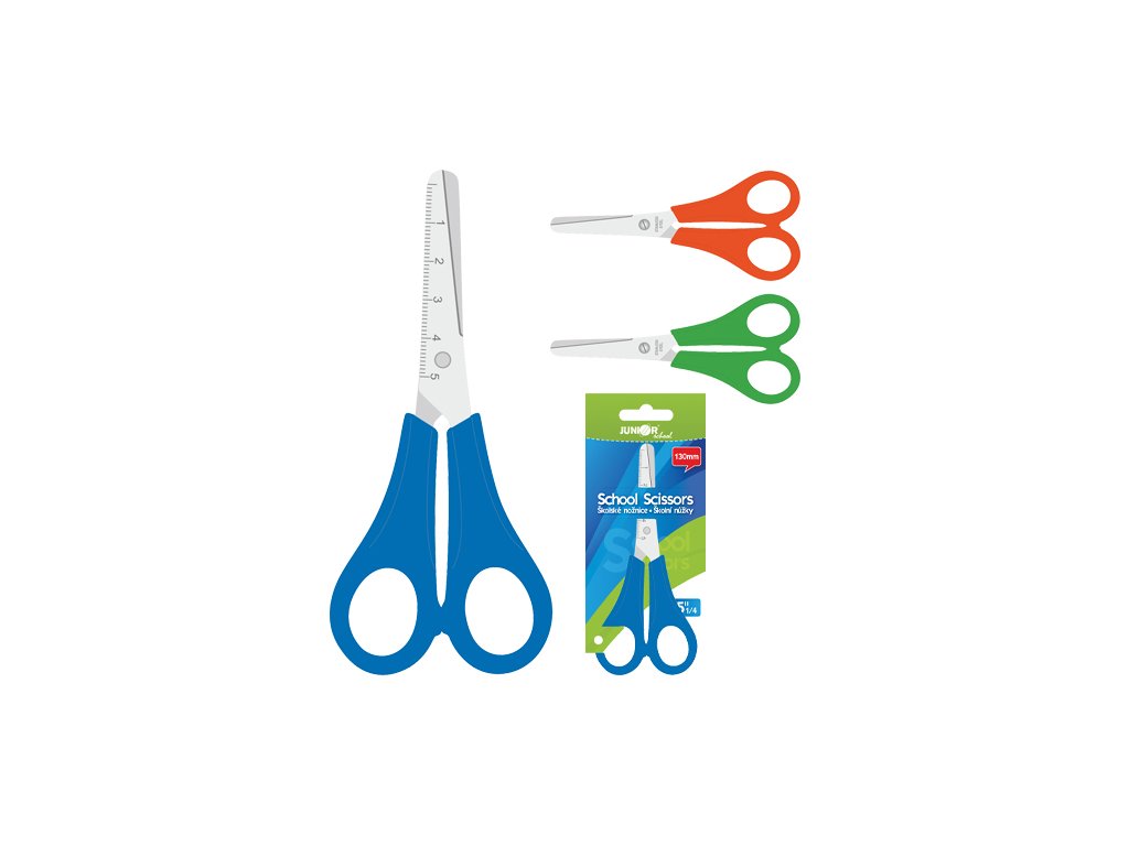Detské nožnice s merítkom na čepeli, dĺžka nožníc 13 cm, s rukoväťami z PP dodávané na blistri, v modrej a oranžovej a zelenej farbe. Rozmer: 130x55mm, 40mm čepeľ. Neobsahujú PVC.Dodatočné parametre