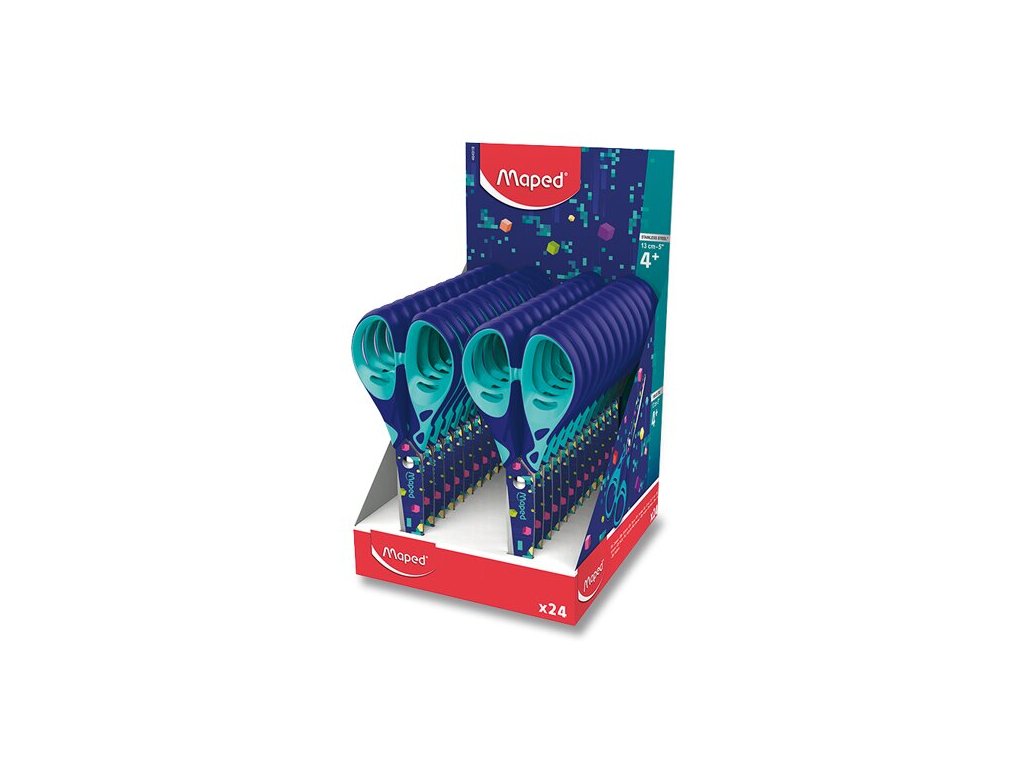 Školské nožnice Maped Pixel Party o veľkosti 13 cm s atraktívnym dizajnom inšpirovaným hernými kódmi.