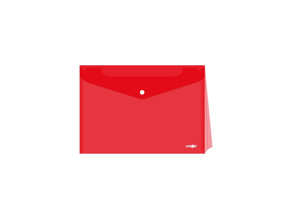 Obal na dokumenty A4 so zapínaním na patentku a rozšíriteľným dnom, vyrobený z kvalitného priehľadného PP materiálu, priehľadný/červený.Dodatočné parametre