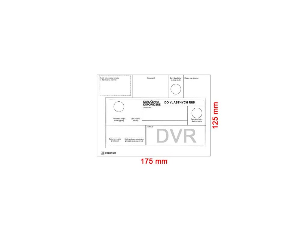 Doručenkové obálky formátu B6 (125x175 mm) - do vlastných rúk, sú priamoprepisujúce a sú vhodné na automatické spracovanie na poštových triediacich linkách. Obálky majú platný atest od slovenskej pošty. Balenie 1000 ks.Dodatočné parametre