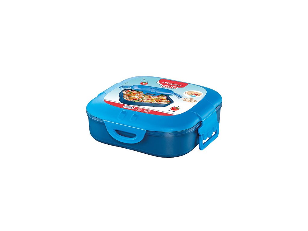 Maped Picnik Kids box červený modrý Jednoposchodový obedový box z kolekcie Concept Kids v modrej farbe s červeným vekom je vyrobený z kvalitného a zdravotne neškodného polypropylénu a polyetylénu. Neobsahuje bisfenol A, ani ftaláty. Objem 0,74 l. - zaoblené rohy pre väčšiu bezpečnosť- pri riadnom uzatvorení netečie- box je možné kompletne rozložiť a dôkladne umyť- možno umývať v umývačke- bez veka je možné ohrievať v mikrovlnnej rúre.Objem -> 0,74 l.Dodatočné parametre