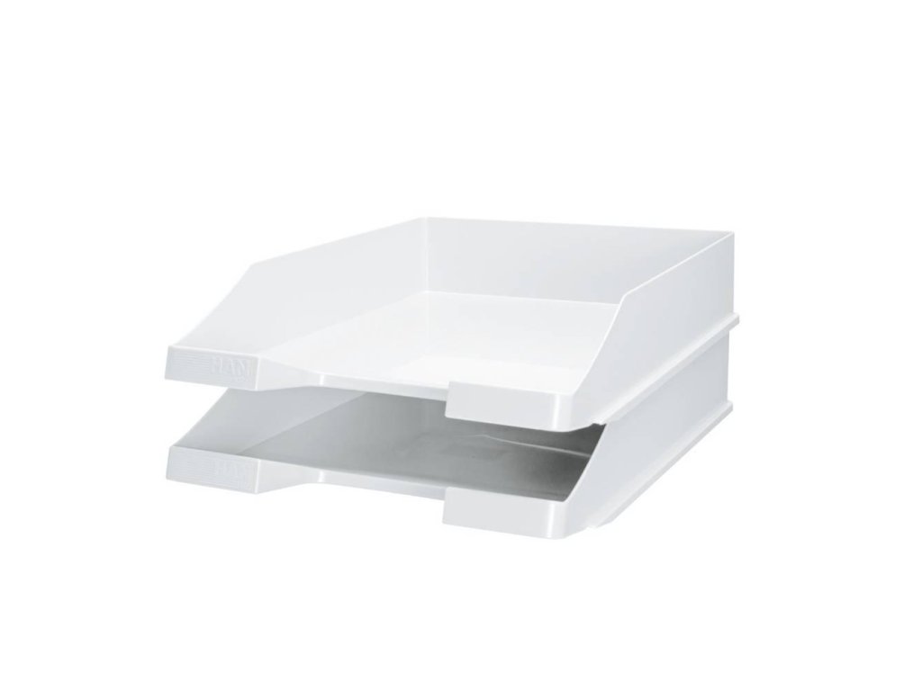 Stohovateľný odkladač formátu A4 z nepriehľadného plastu. Zadné zarážky umožňujú odkladače stohovať aj stupňovito dozadu. Väčšie balenie 10 ks.Farba: biela