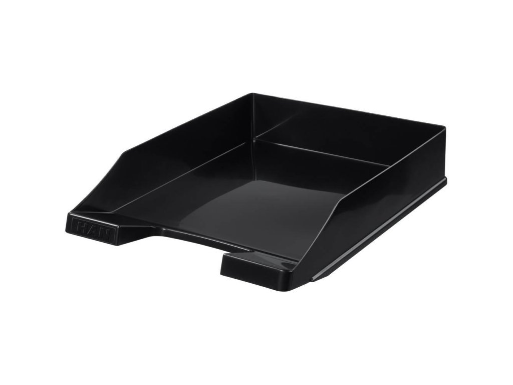 Stohovateľný odkladač formátu A4 z nepriehľadného plastu. Zadné zarážky umožňujú odkladače stohovať aj stupňovito dozadu. Väčšie balenie 10 ks.Farba: čierna