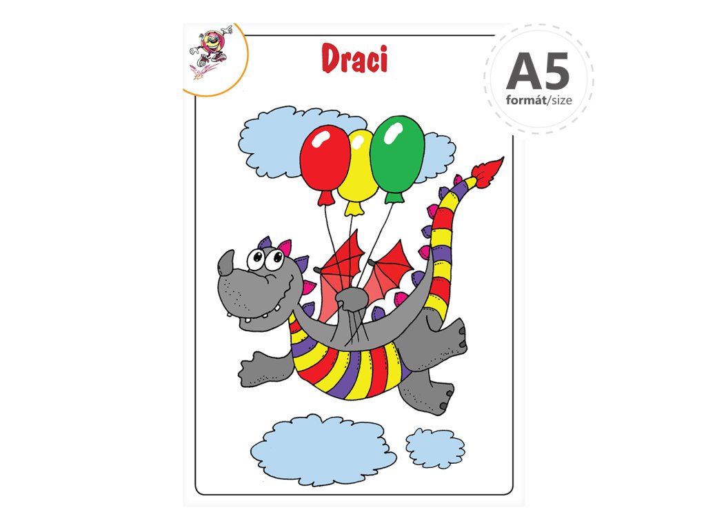 Detská omaľovanka Draci A5 s farebnými obrázkami a predlohami pre rozvíjanie detskej fantázie. Maľovanie podľa predlohy. Počet strán: 16.Dodatočné parametre