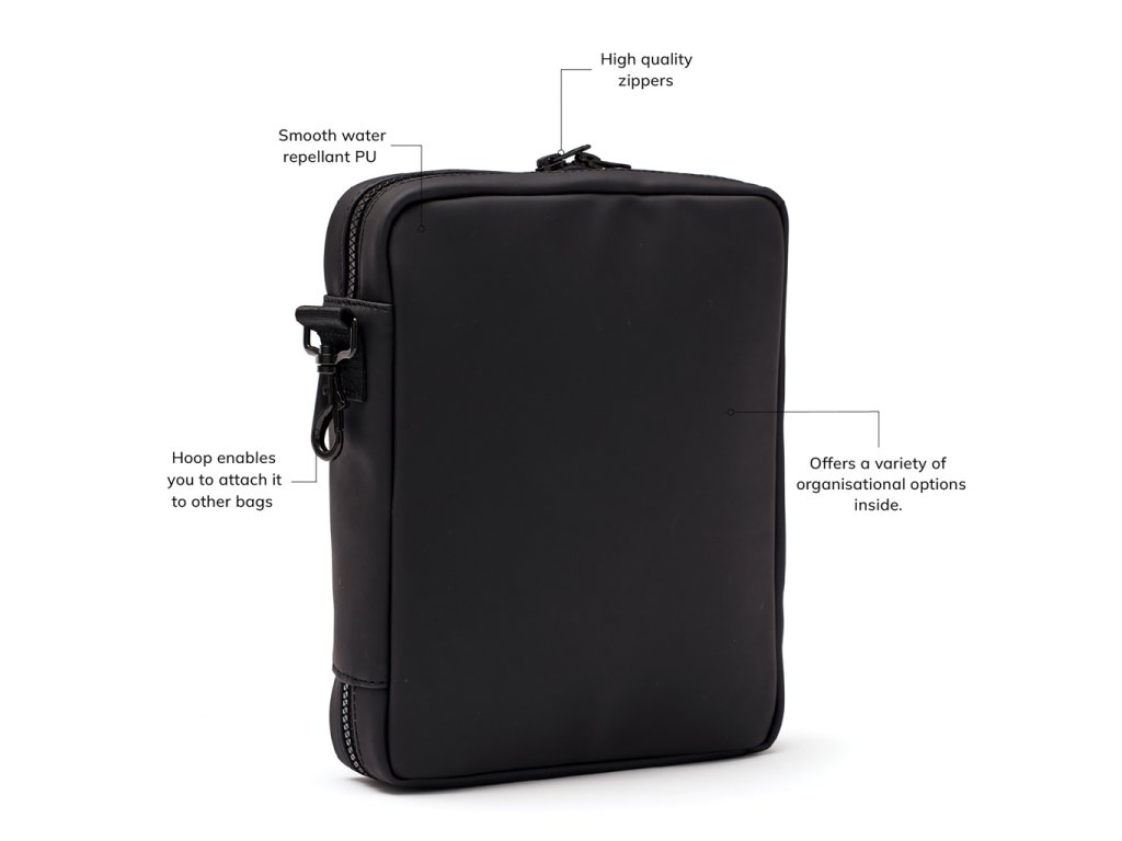 S týmto praktickým organizérom budete mať vždy po ruke všetko, čo potrebujete. Pojme všetko, čo potrebujete počas dňa, napríklad slúchadlá, powerbanku, perá a zápisníky. Karabína na krátkej strane umožňuje pripevniť tašku k väčšej batožine.Dodatočné parametre