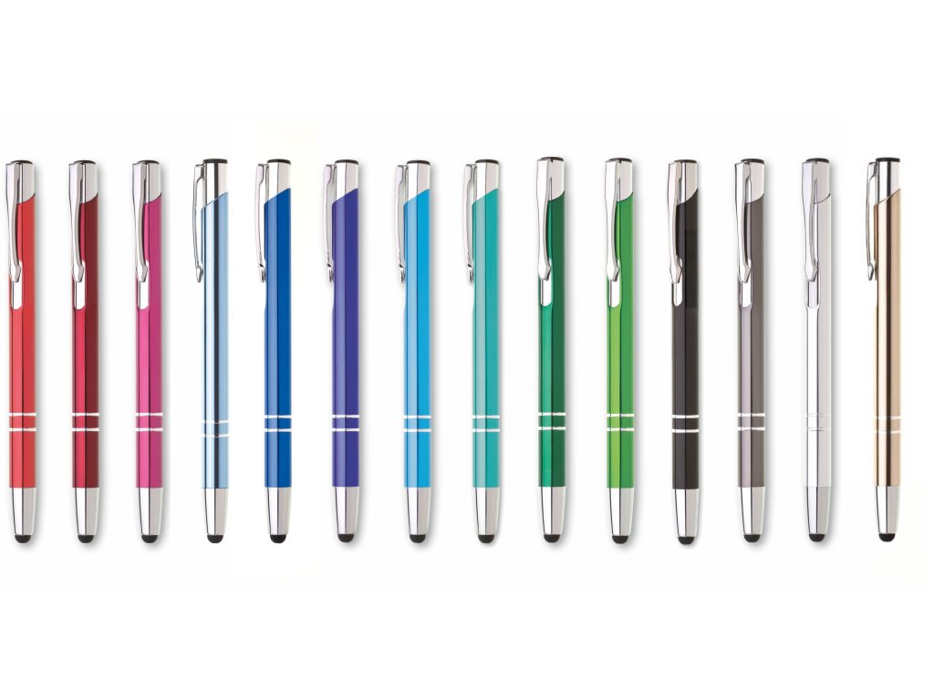 Obľúbené kovové guľôčkové pero ORIN s mäkkým hrotom pre dotykové displeje . Lesklé farebné telo je doplnené o chrómované časti. Modrá náplň veľkoobjemová.Dodatočné parametre
