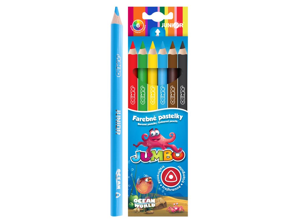 Pastelky JUNIOR Ocean World JUMBO trojhranné - sada 6 ks