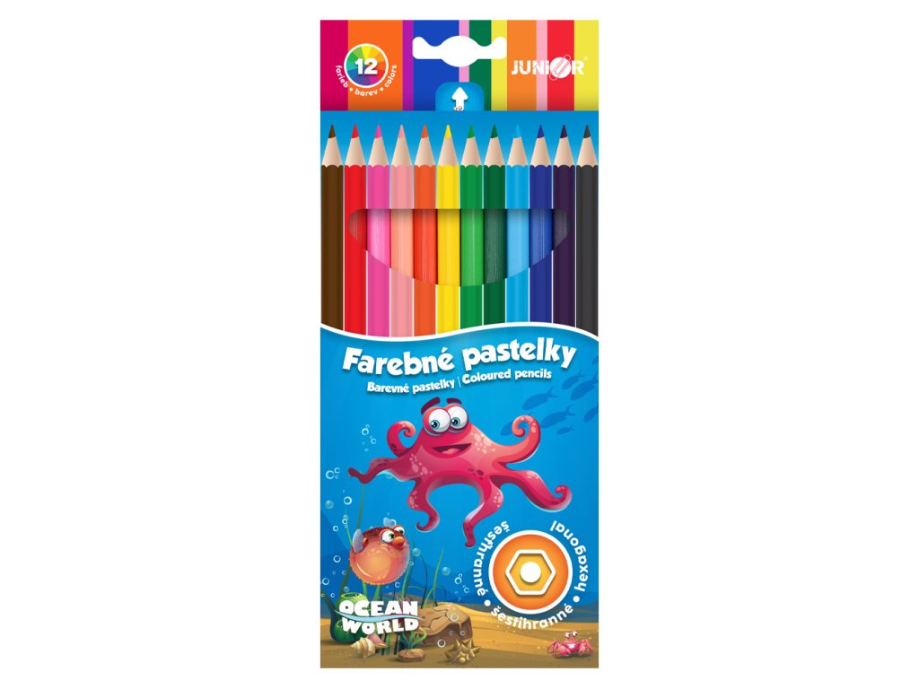 Pastelky JUNIOR Ocean World šesťhranné - sada 12 ks