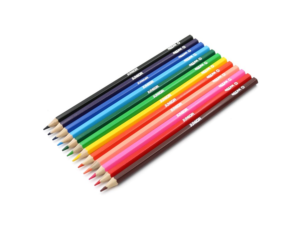 Drevené farebné pastelky sýtych farieb, ktoré vyhovejú rozmanitým potrebám detí. Klasický šesťhranný tvar, určené pre školákov aj predškolákov. Pastelky nemajú na tele žiadne logo výrobcu. Sada obsahuje 12 kusov, balené v papierovej krabičke.Dodatočné parametre