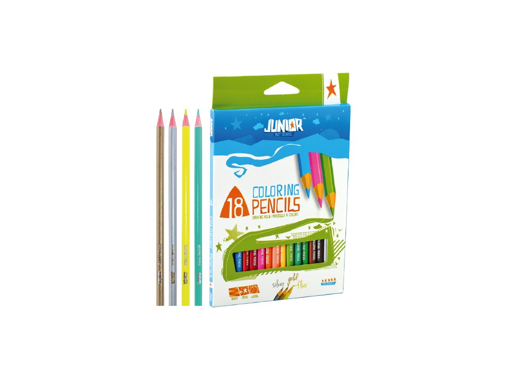 Drevené pastelky s trojhranným ergonomickým úchopom pre jednoduchšie uchopenie. V balení sa nachádzajú dve špeciálne farby zlatá a strieborná + FLUO žltá a ružová.Dodatočné parametre