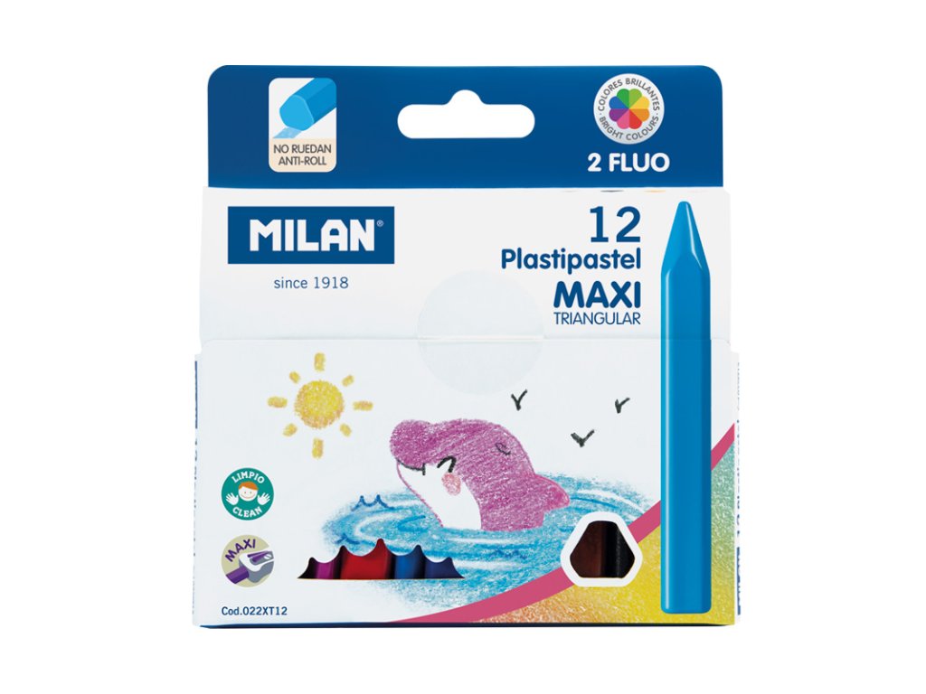Pastelky MILAN MAXI plastické 10 ks + 2 ks FLUO