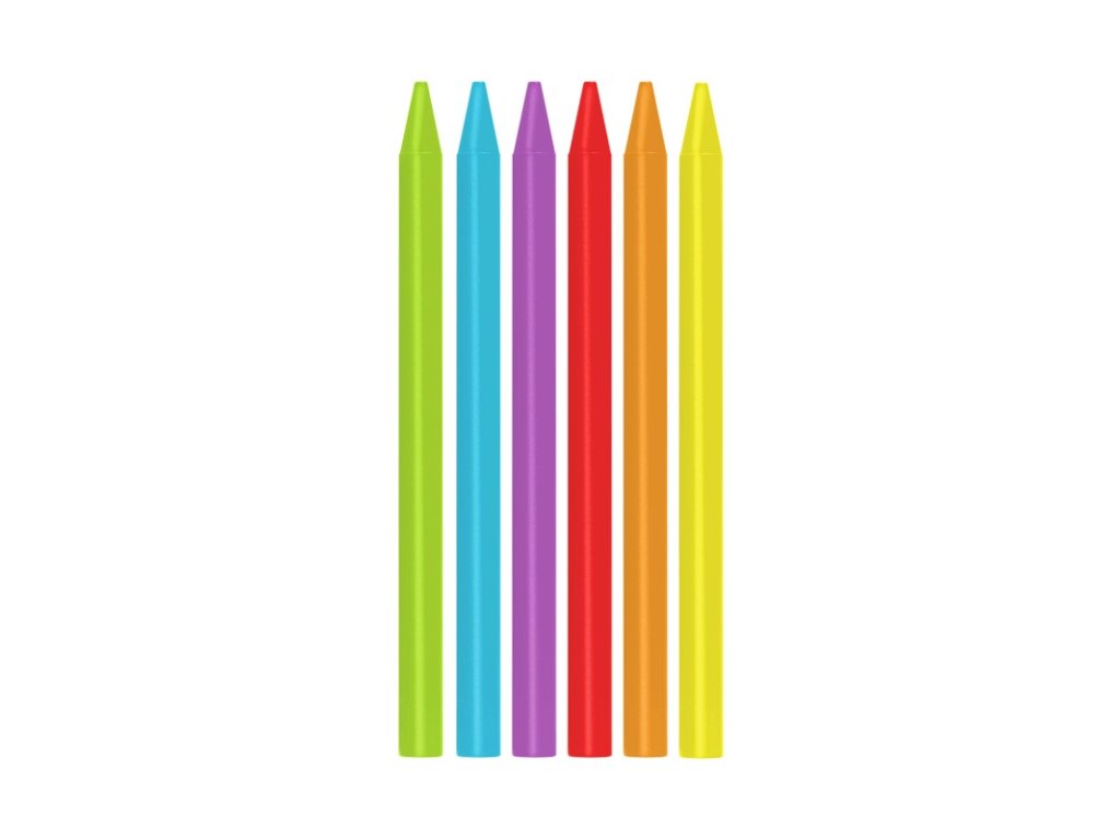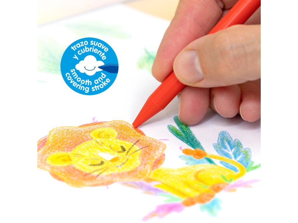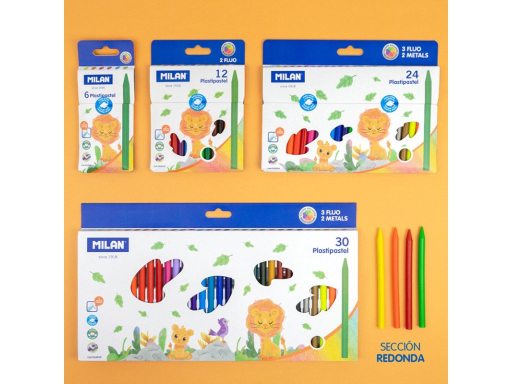 6 farebných ceruziek Plastipastel: žltá, oranžová, červená, fialová, modrá a zelená. Okrúhly tvar. . Ceruzky Plastipastel sú farebné ceruzky, čisté a odolné, ideálne pre malé deti. 3 rôzne ťahy: jemné čiary sa dajú nakresliť špičkou ceruzky, hrubé čiary sa dajú nakresliť koncovou časťou a väčšie plochy sa dajú vytieňovať pomocou celej dĺžky ceruzky.Dodatočné parametre
