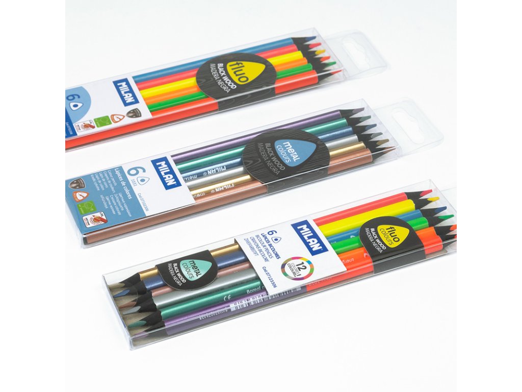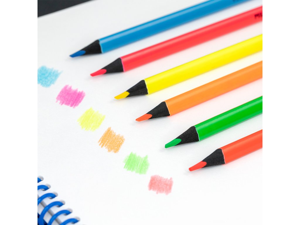 Sada farebných ceruziek vyrobených z čierneho lipového dreva. Pastelky s ergonomickým trojuholníkovým úchopom. Grafitová tuha je odolná voči zlomeniu - vďaka svojmu systému LPS (Lead Protection System). Drevo pochádza z trvalo udržateľných lesov. 6 Fluo / neónových farieb: oranžová, zelená, žltá, ružová, modrá a červená.Dodatočné parametre