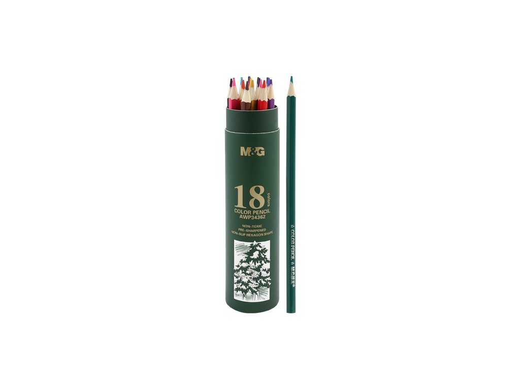 Pastelky šesťhranné M&G v puzdre, sada 18 ks