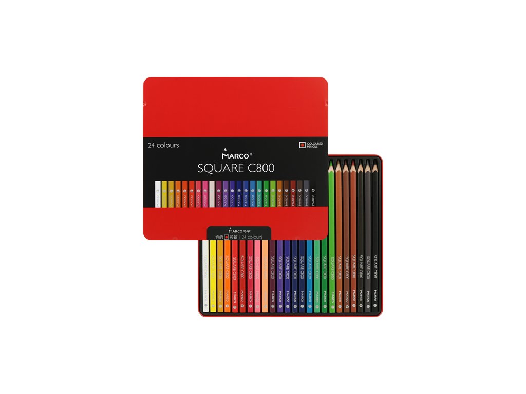 Pastelky štvorhranné MARCO Square C800 - sada 24 ks v plech. boxe