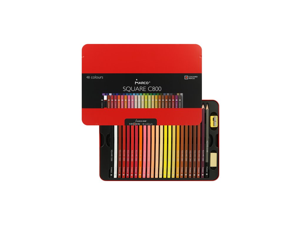 Pastelky štvorhranné MARCO Square C800 - sada 48 ks v plech. boxe