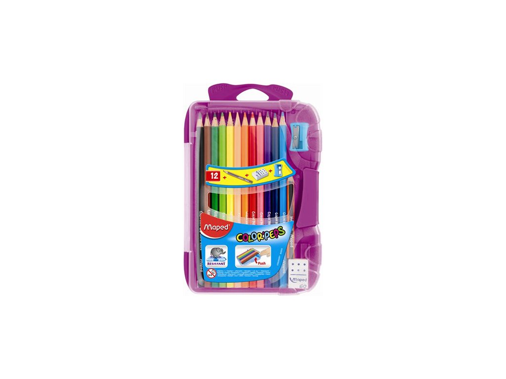 Pastelky v boxe, ktorý je odolný proti rozbitiu. Trojhranné telo pastelky umožňuje pohodlné uchopenie. Mäkká a odolná tuha, jasné farby. Balenie obsahuje 12 ks pasteliek, gumu a orezávatko. Francúzka značka MAPED zaručuje vysokú kvalitu, funkčnosť a moderný dizajn.Dodatočné parametre