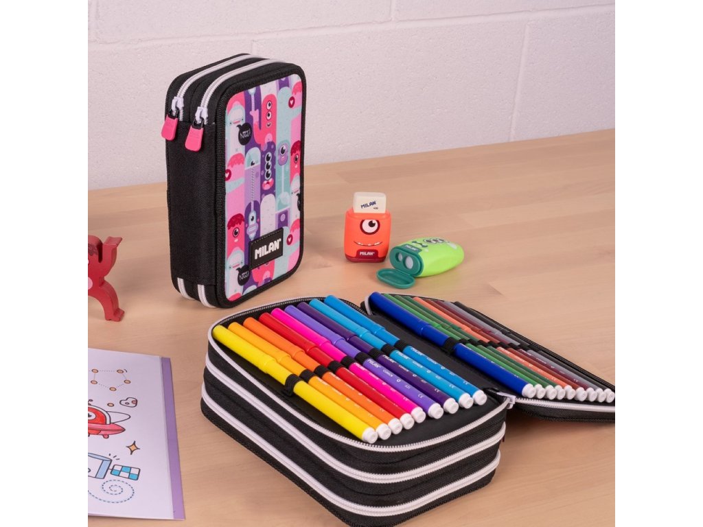 Trojposchodový peračník, ktorý vám umožní mať školské potreby vždy upratané a ľahko dostupné.