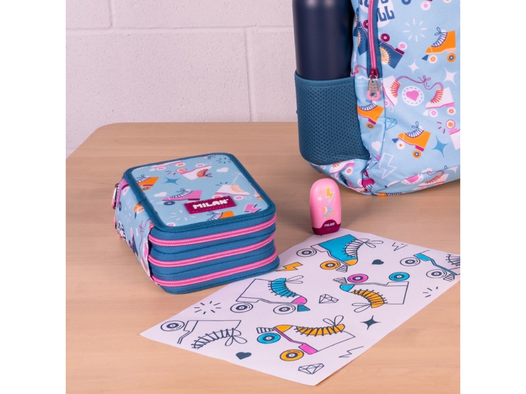 Trojposchodový peračník, ktorý vám umožní mať školské potreby vždy upratané a ľahko dostupné.