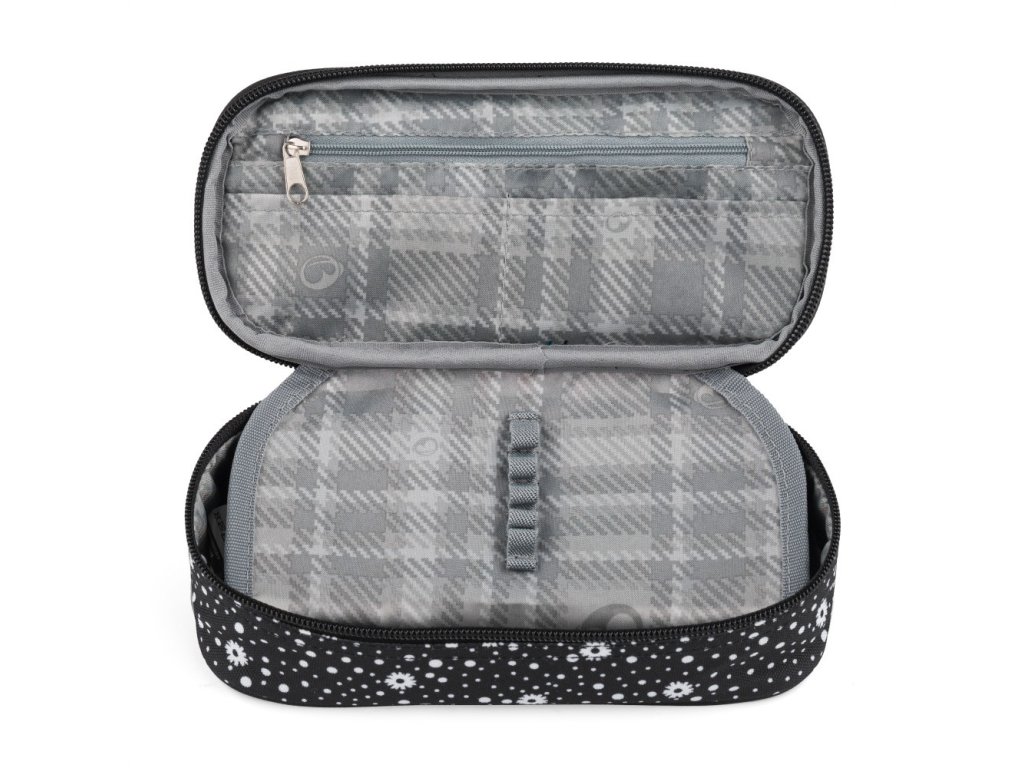 - jednokomorový, priestranný peračník s dvojitou priehradkou – na školské pomôcky