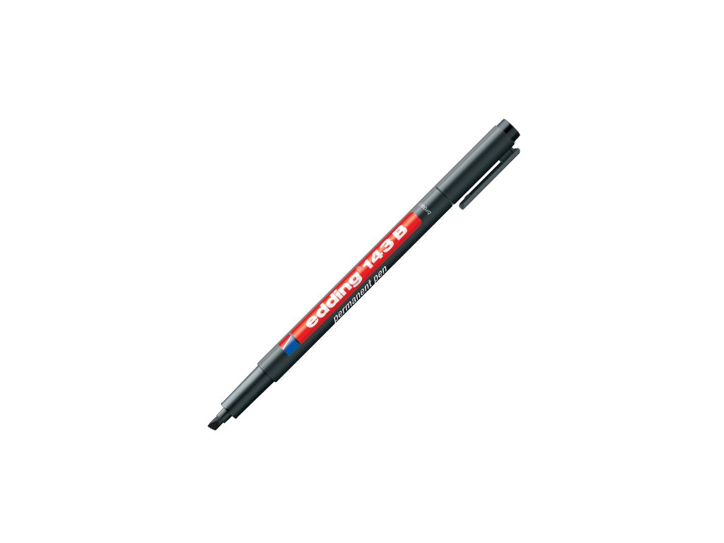 Permanentný popisovač so zrezaným písacím hrotom strednej hrúbky. Vhodný na popisovanie fólií na spätnú projekciu, na sklo, umelú hmotu a ďalšie povrchy. Plnený vodovzdorným, permanentným atramentom. Šírka stopy 1-3 mm. Farba: čierna.Dodatočné parametre