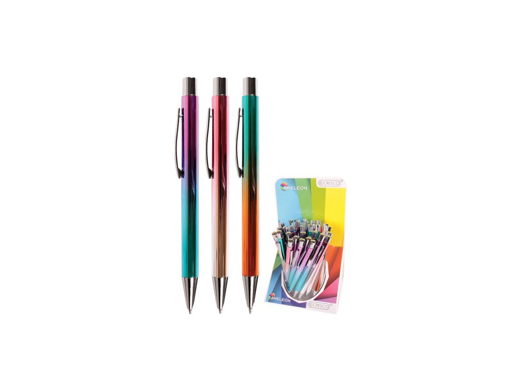 Guľôčkové pero Cameleon v gradientných, lesklých farbách a chrómovanými doplnkami.